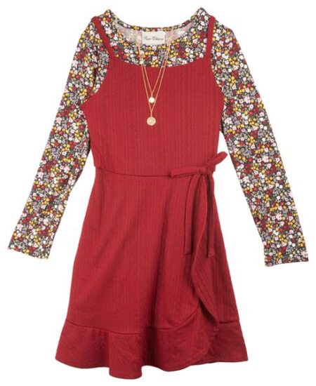 Beautees Big Girls Velvet Slip Dress with Floral Printed Mesh Top