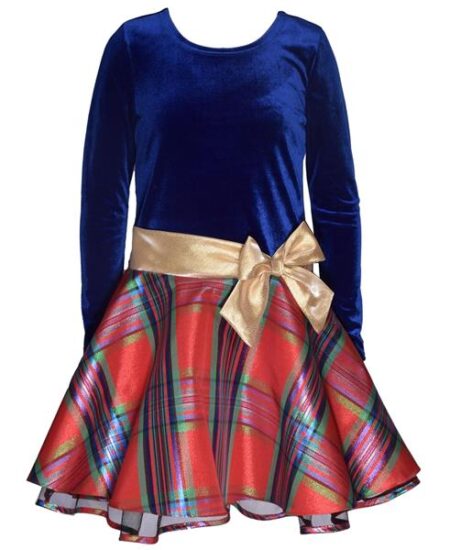 Bonnie Jean Big Girls Long Sleeve Velvet Bodice with Plaid Skirt Dress