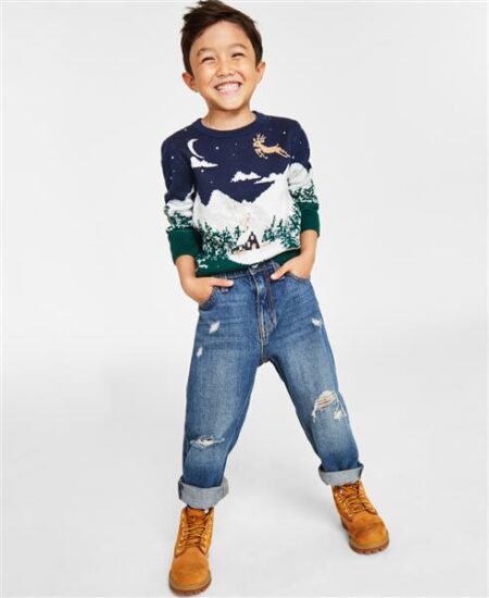 Holiday Lane Little Boys Snowy Landscape Crewneck Sweater