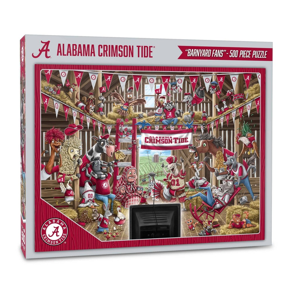 Show your Alabama pride in a whole new way with the Barnyard Fans “Crimson Tide” 500-Piece Puzzle! This one-of-a-kind puzzle features original, hand-drawn illustrations of barnyard animals decked out in Crimson Tide spirit, from cows to chickens, they’re all cheering right alongside you. Put the pieces together and watch the farm come alive with Alabama pride. With 500 pieces of fun, it’s the perfect challenge for game day, family night, or any true Tide fan. Roll Tide!