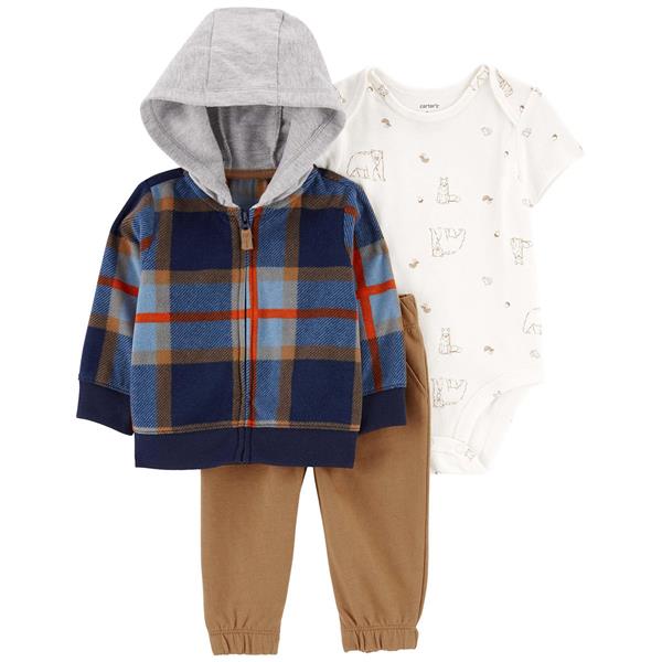 Dress your little one in the Carter’s Baby Boys 3-Piece Cardigan Set from the My First Love collection. This soft cotton set includes a button-front cardigan, short-sleeve bodysuit, and coordinating pants for a stylish and comfortable outfit.
