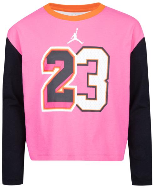 Express bold style with this modern long-sleeve T-shirt from Jordan. Featuring a colorblocked jersey knit body, breathable mesh back, and relaxed dropped shoulders, this top blends comfort with standout design. The high-low hem adds a contemporary touch, making it a cozy yet fashion-forward choice for everyday wear.