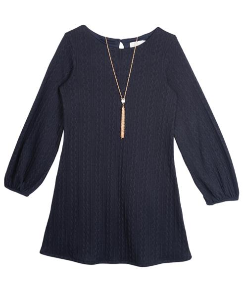 Elevate her look with this stylish two-piece set from Rare Editions, featuring a chic shift dress crafted in an allover textured double knit. Puff sleeves with banded cuffs add a fashionable touch, while the included gold-tone tassel necklace completes the outfit with polished flair. Perfect for parties or special outings, this set blends comfort with standout style.