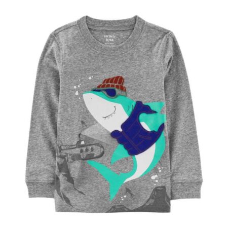 Carter's Toddler Boys Shark Snow Yarn Long Sleeve T-shirt