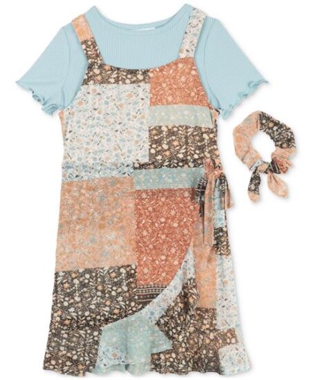 Rare Editions Toddler Girls & Little Girls Patchwork Wrap Dress Set (2T)